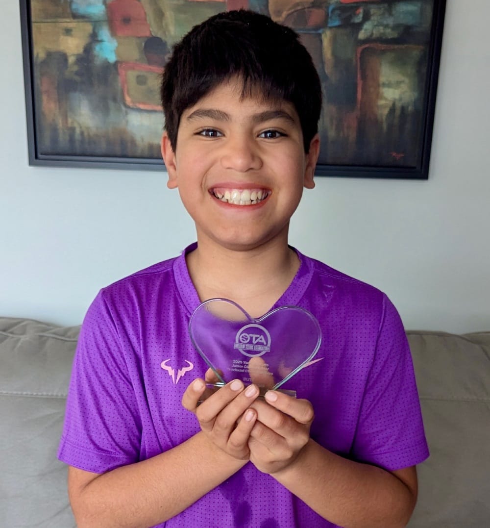 His first round was very close, losing to Egor Dobrovolsky 7-6(3), 6-2. The consolation round was even closer, losing to Danniel Zheng 6-4, 5-7, 10-7. Throughout those four matches, Landon’s comportment and sportsmanship caught the eye of the event organizers, resulting in his selection for the prestigious award.