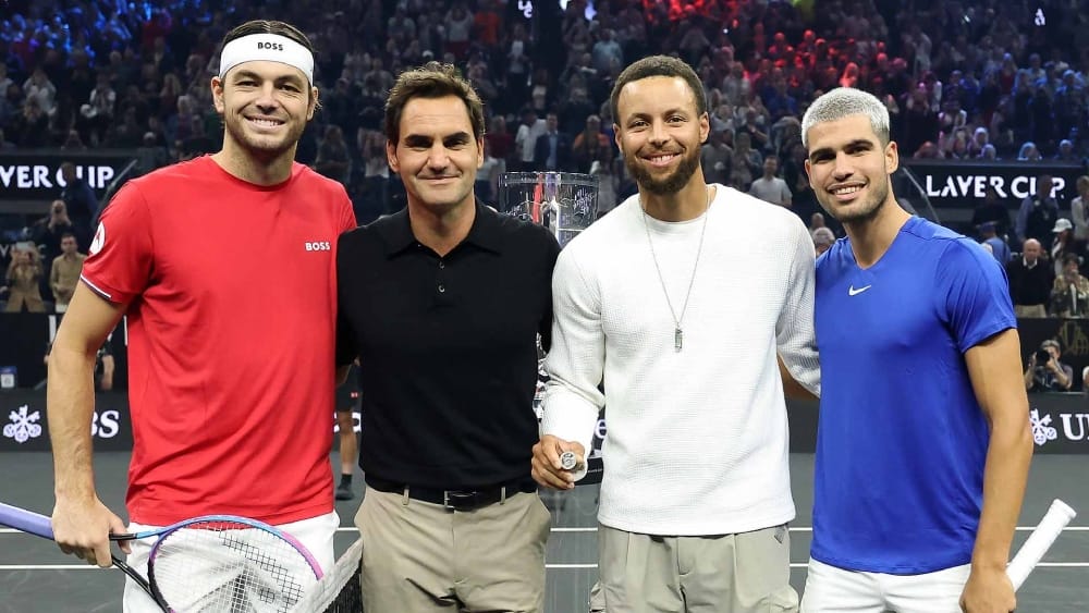The coin toss for Match #7 was a crowd-pleaser : Taylor Fritz, Roger Federer, Steph Curry, Carlos Alcaraz. Read about their match here: