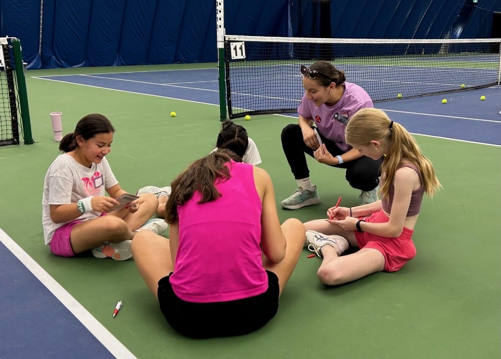 A Girls-Set-Match day includes a variety of games and activities designed to bring the girls together, to encourage risk-taking and opening up to each other. They excelled at activities like journal entries and happily worked together in groups. They also did a lot of running, hit a great many tennis balls and worked up a good appetite for a healthy lunch together in the beautiful courtyard.