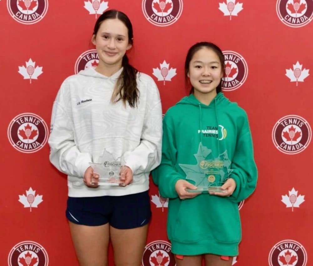 Congratulations to Lily Rochon of Oakville, winner of both the U16 and U18 girls doubles in the 2025 Fischer National Indoor Championships. The U16 was played in Verdun, Quebec with the final being on March 27. A week later, Lily won the U18 doubles at Sobeys stadium in Toronto. Her partners were Laurence Demers in the U16 (from Quebec) and Charlize Celebrini in the U18 (from BC).