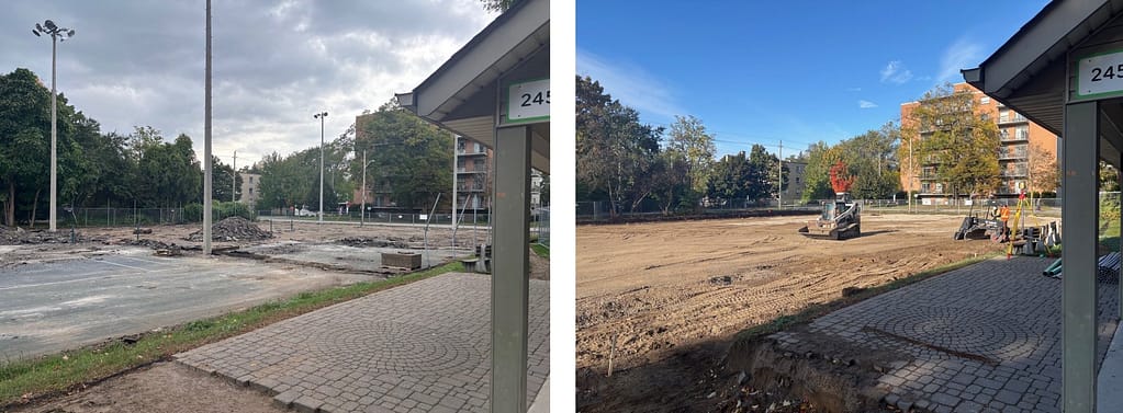 The much-needed project has been years in the planning. It includes new fencing and lights on the two hartru courts and the east-west practice court as well as on the four main hard courts. Demolition began right after Labour Day and the weather conditions have been ideal. Once the top layers are in place, they’ll cure over the winter. Acrylic coatings and finishing touches will come in the spring.