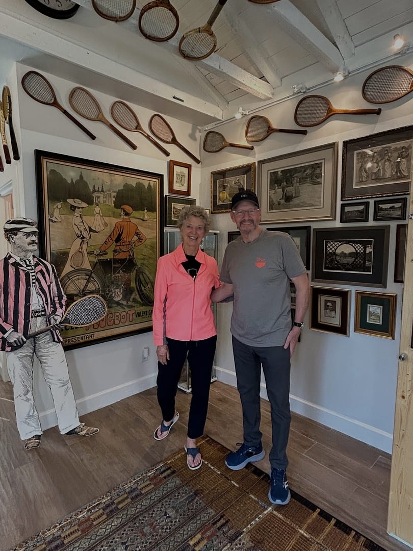 Charleston, South Carolina : It was a trip to see the WTA500 tournament while also enjoying the spring that hasn’t yet arrived in SWR. We were in a VRBO on a residential street and were astonished to come upon this exquisite spot a block away. The Tiny Tennis Museum is the creation of Jim McCready, one of North America’s foremost tennis collectors. It’s a true labor of love, and had opened just a few days before our visit. The building is no more than 15’ wide and 25’ deep, but it’s packed with beautiful displays that cover 150 years of tennis history.