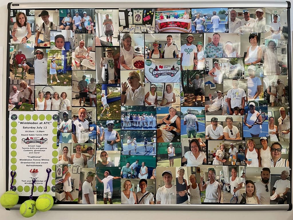 The Aldershot Tennis Club opted to invite OTA’s NBO Roadshow to their party on July 12th, and Simon Burden was a hit with the smash cage. Carol Victor did the photography honours, compiling the photos into a beautiful bulletin board montage afterwards.
